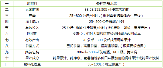 7、可根據(jù)用戶生產(chǎn)各種復(fù)合型功能飲料基本參數(shù):